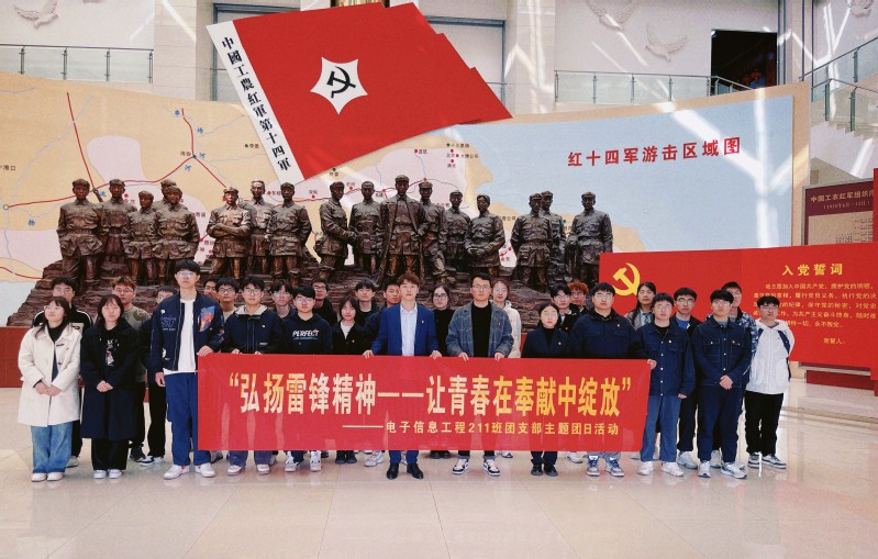 为追忆百年党史,缅怀革命先烈,用实践追寻革命精神,用行动厚植爱国情怀,3月15日,南通大学云顶线上娱乐城-在线娱乐城 辅导员白志明、曹佳锋带领云顶线上娱乐城-在线娱乐城 学生第三党支部和电子信息工程211团支部前往如皋市红十四军纪念馆开展主题党日活动和主题团日活动。