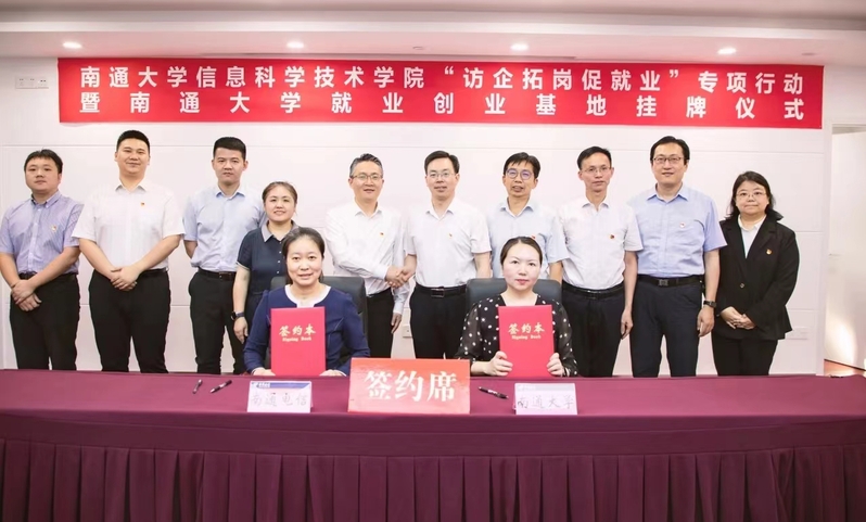 为深化校企合作,推动毕业生高质量充分就业, 6月1日下午,云顶线上娱乐城 常委、副校长施佺带队赴中国电信南通分公司开展“访企拓岗促就业”专项行动。中国电信南通分公司党委委员、副总经理俞冬辉接待了施佺一行,并共同为南通大学大学生就业创业基地揭牌。