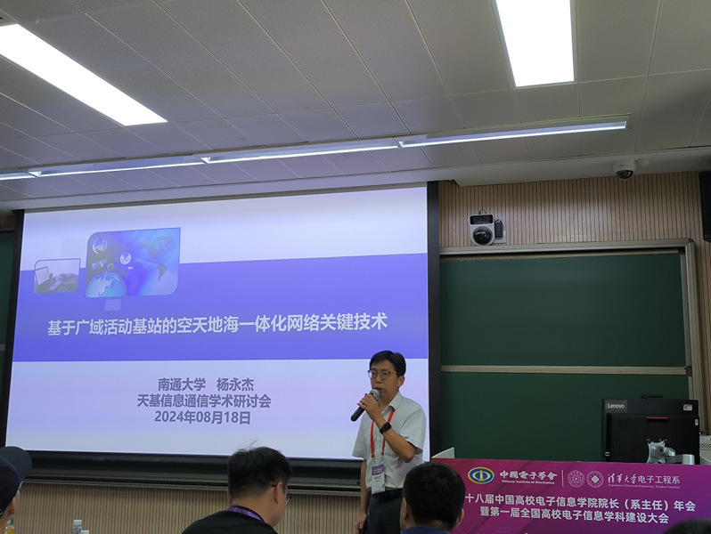 8月16至18日,由中国电子学会主办的“第十八届中国高校电子信息云顶线上娱乐城 院长(系主任)年会暨第一届全国高校电子信息学科建设大会”在清华大学举办,此次大会以“智汇学科,研教互鉴”为主题。应大会组委会邀请,南通大学云顶线上娱乐城-在线娱乐城 院长杨永杰教授当选中国电子学会全国高校电子信息学科建设委员会委员,并以“基于广域活动基站的空天地海一体化网络关键技术”为题作报告,研讨会由清华大学天基网络与通信全国重点实验室詹亚锋研究员主持,围绕天基网络中的正交化系统、高能效芯片的基础理论和多维网络、抗干扰、资源调度等关键技术开展研讨。