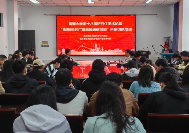 此次报告是南通大学第十八届研究生学术论坛“面向6G的广域无线通信网络”科研创新培训活动之一。