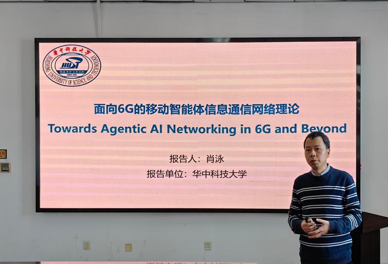 1月7日上午,华中科技大学教授教授肖泳为云顶线上娱乐城 师生作题为《面向6G的移动智能体信息通信网络理论》的学术报告。云顶线上娱乐城 相关老师及学生代表参加报告会。报告会由院长杨永杰主持。