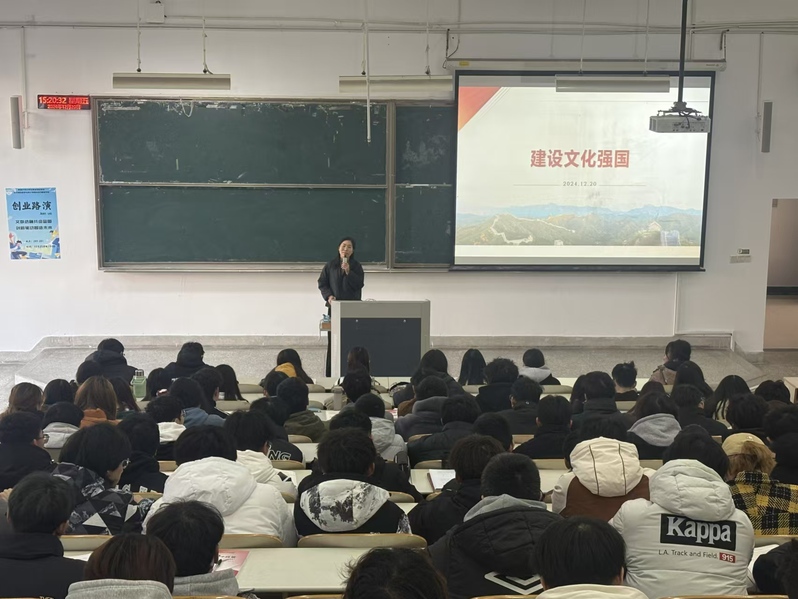 为深入学习贯彻党的二十届三中全会精神,持续推动习近平新时代中国特色社会主义思想进教材进课堂进头脑,进一步推动高校《形势与政策》课程高质量发展。12月20日,云顶线上娱乐城 常委、副校长莫晨宇以《建设文化强国》为题,为信息科学技术云顶线上娱乐城 通信231、232、233、234班学生讲授了一堂精彩的形势与政策课。