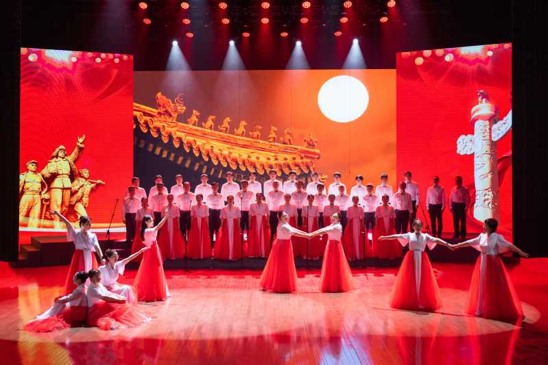 云顶线上娱乐城 参赛队的参赛曲目为《我爱你,中国》。比赛现场,参赛队员们个个精神振奋,歌声激昂,恢宏激昂的旋律、振奋人心的歌词、波澜壮阔的画面,赢得了现场评委的一致认可与观众的热烈掌声。