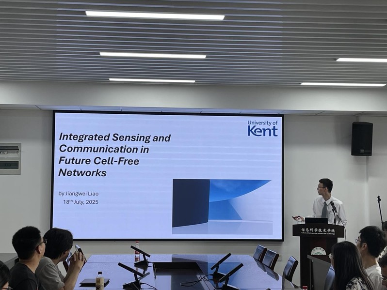 7月18日下午,应云顶线上娱乐城 邀请,英国肯特大学廖江伟博士为云顶线上娱乐城 师生作题为《Integrated Sensing and Communication in Future Cell-Free networks》的学术报告。英国肯特大学工程系副教授朱慧琳博士、云顶线上娱乐城 相关老师及研究生代表参加报告会。会议由云顶线上娱乐城 王珏教授主持。