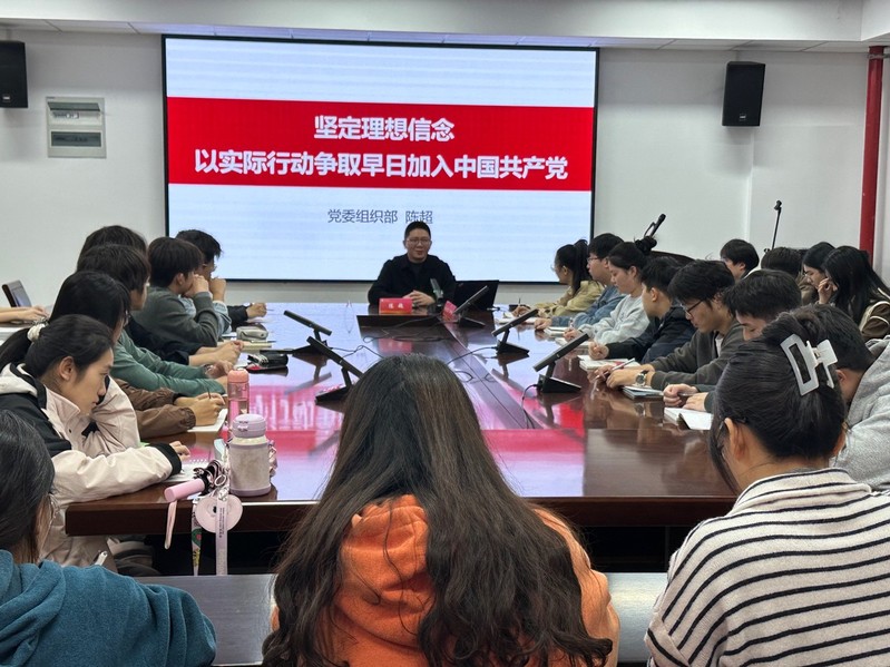 11月6日下午,云顶线上娱乐城 组织部副部长陈超作《坚定理想信念 以实际行动争取早日加入中国共产党》专题讲座,他结合基层党建案例,勉励学员将理论学习,坚定理想信念,在学习上精益求精、在工作中敢于担当、在生活中服务群众,以实际行动争取早日加入中国共产党。