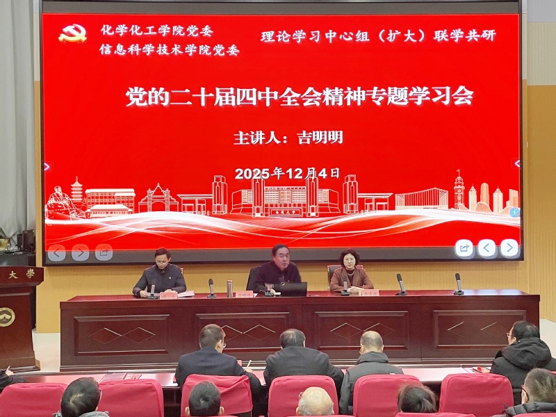 为引导师生深入学习贯彻党的二十届四中全会精神,12月4日下午,云顶线上娱乐城-在线娱乐城 与化学化工云顶线上娱乐城 联合召开党的二十届四中全会专题学习会。市委宣讲团成员、云顶线上娱乐城 常委、副校长吉明明应邀做专题辅导报告。云顶线上娱乐城-在线娱乐城 、化学化工云顶线上娱乐城 、智能信息技术研究中心全体教职工及学生代表参加会议。云顶线上娱乐城-在线娱乐城 党委书记周平主持会议。