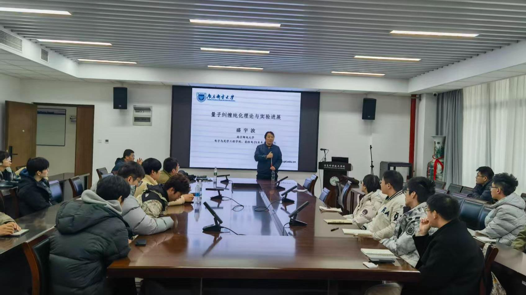 12月19日下午,应云顶线上娱乐城 邀请,南京邮电大学教授、博士生导师盛宇波为云顶线上娱乐城 师生作题为《量子纠缠纯化理论与实验进展》的学术报告。云顶线上娱乐城 相关老师及研究生代表参加报告会。报告会由严培舜老师主持。