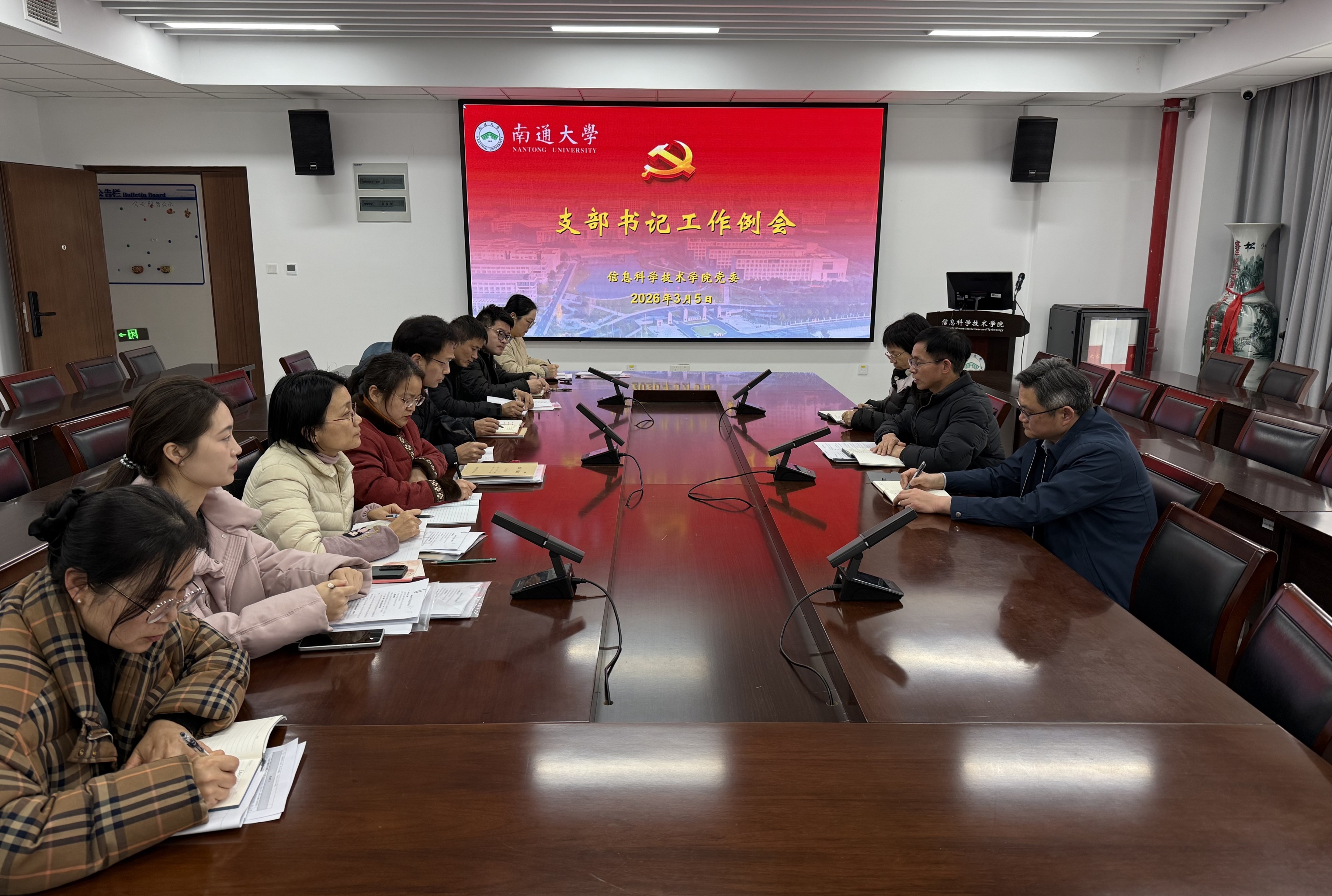 3月5日上午,云顶线上娱乐城 党委召开2026年第一次党支部书记例会。总结2025年党建工作,部署2026年党建重点任务。院党委书记周平主持会议,院党委副书记、副院长刘俊,院党委纪检委员沈晓燕,院党委兼职组织员及全体党支部书记参加会议。