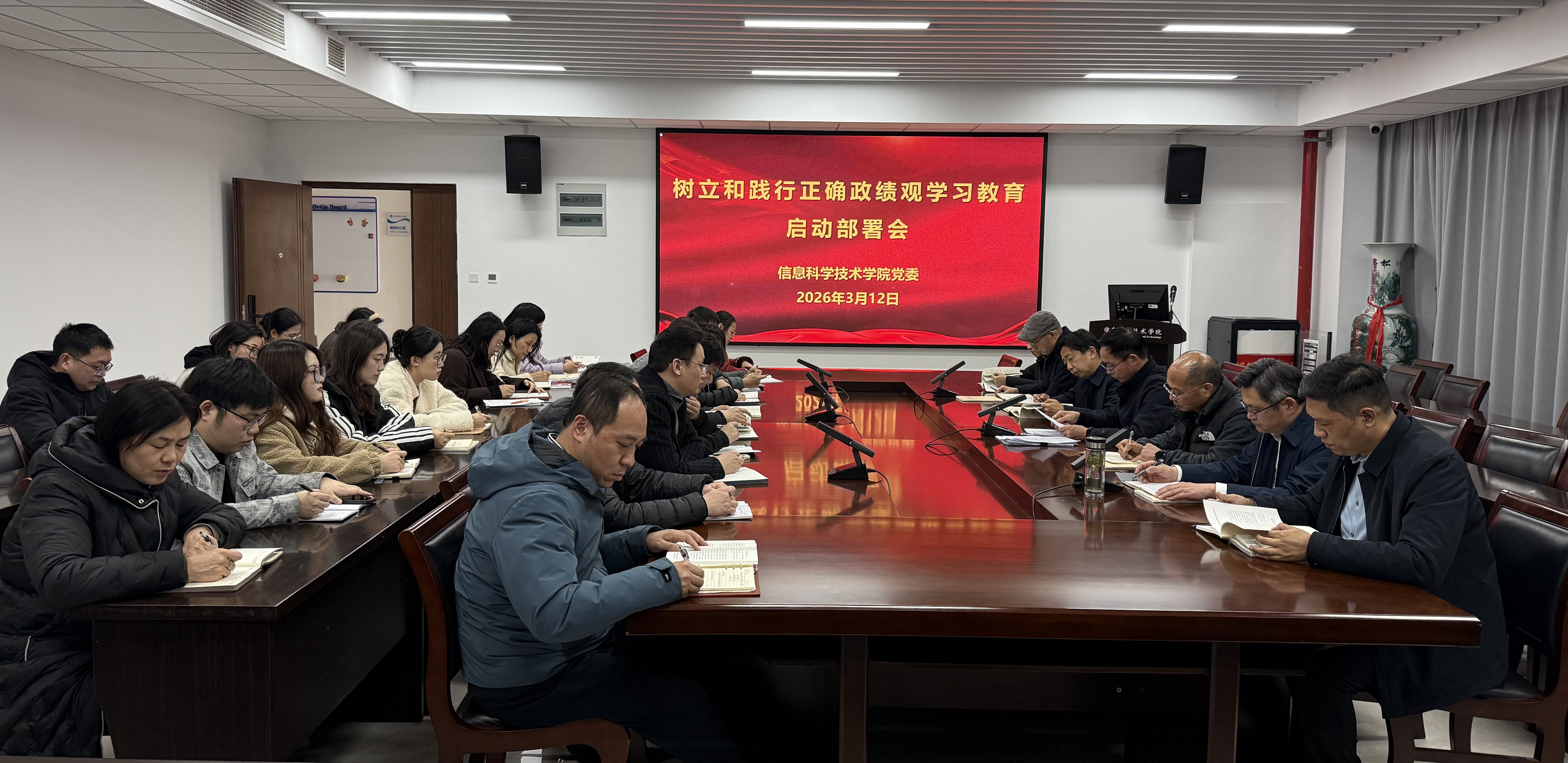 3月12日,云顶线上娱乐城 党委召开树立和践行正确政绩观学习教育启动部署会。云顶线上娱乐城 及智能信息技术研究中心班子成员、党委委员、党支部书记、系室负责人参加会议。院党委书记周平主持会议。